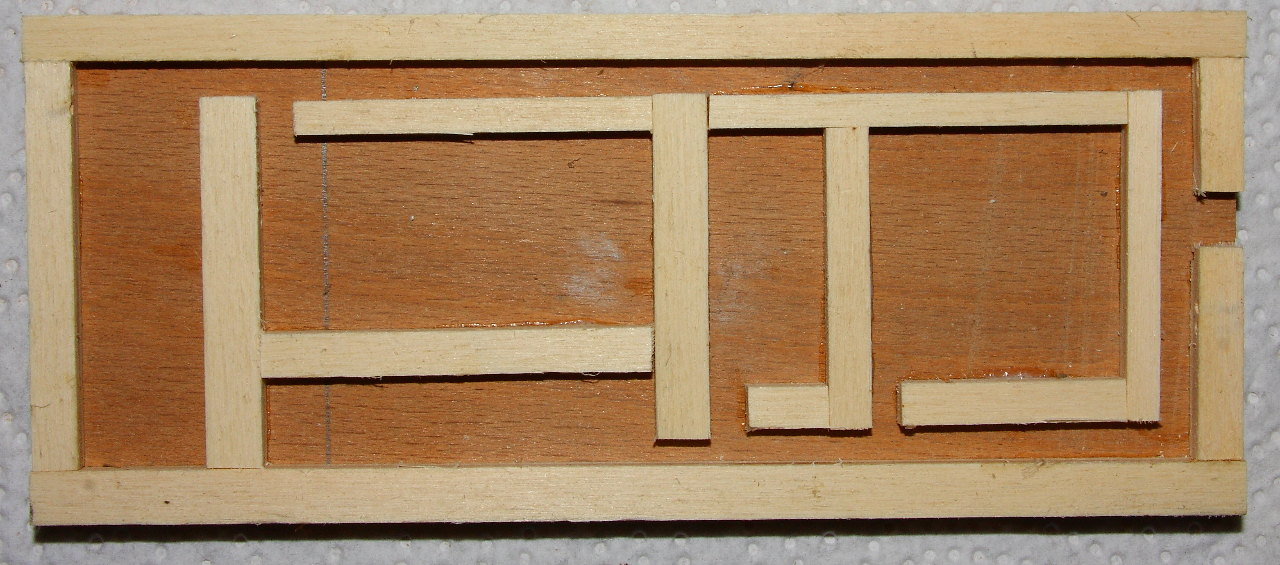 Wie schon gehabt, eine Sperrholzgrundplatte auf die zugeschnittene Holzleisten geklebt werden.