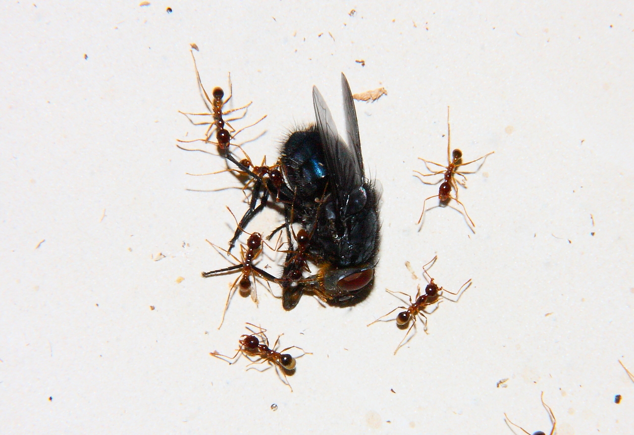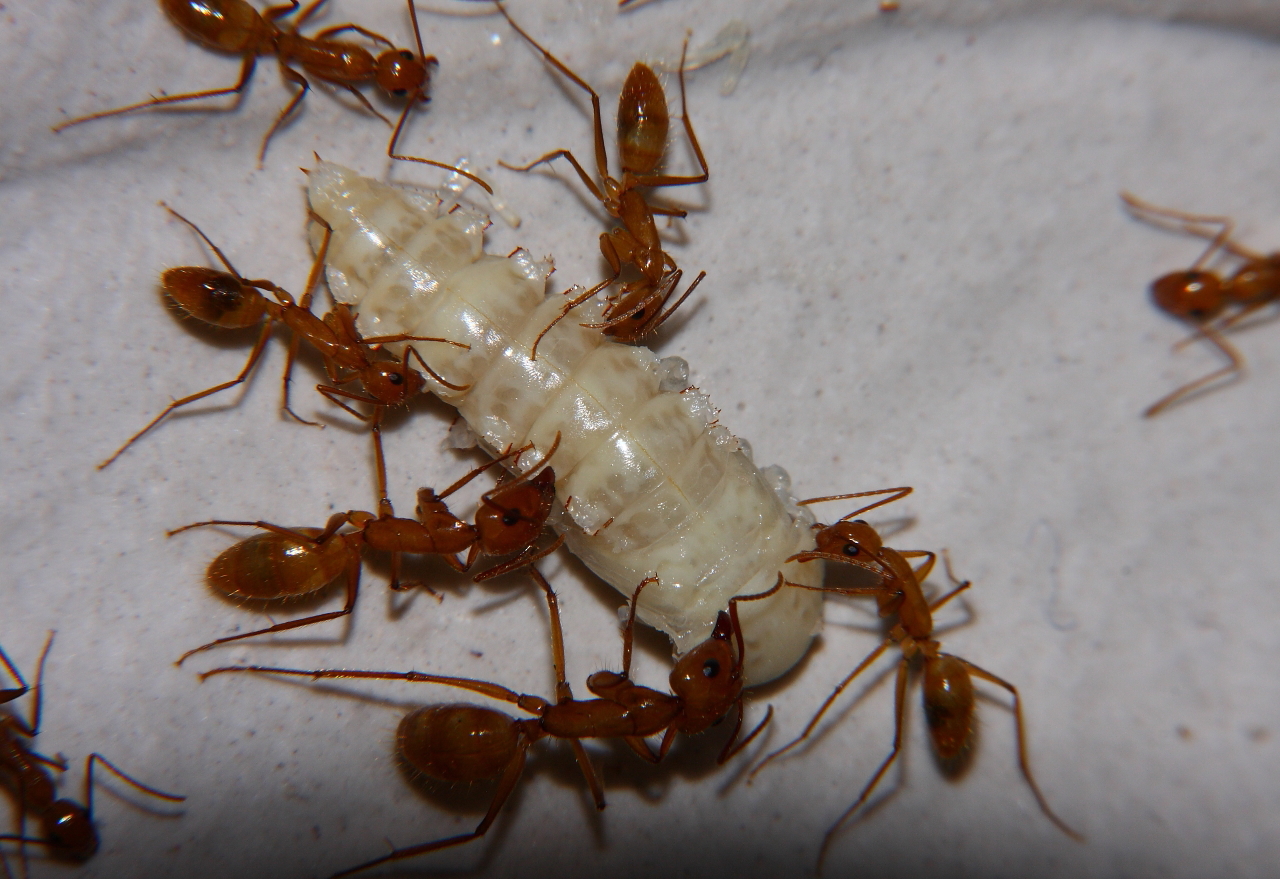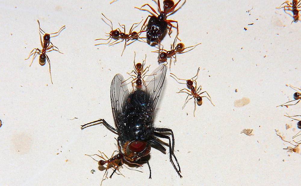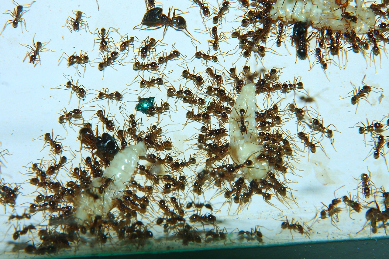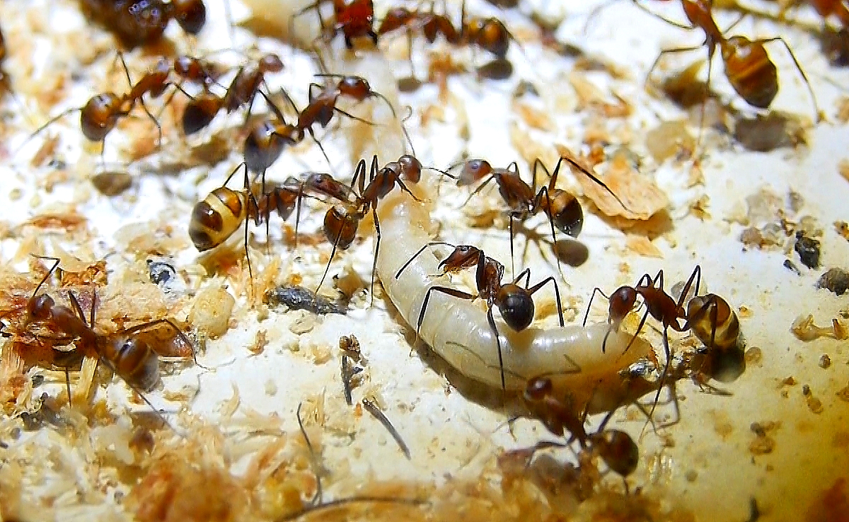 Anders sieht es mit Fliegenmaden aus, die werden von vielen Ameisenarten gerne genommen.