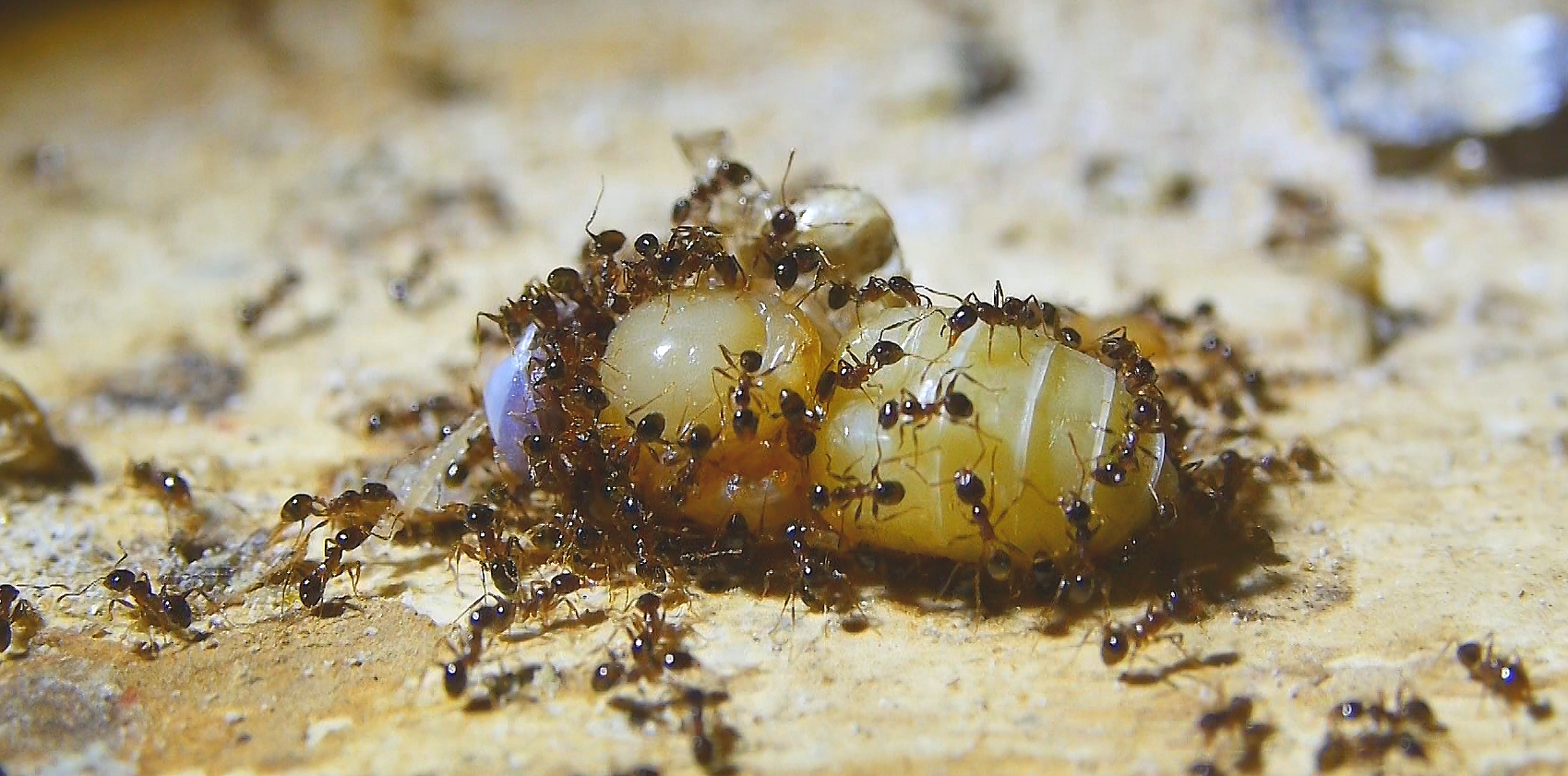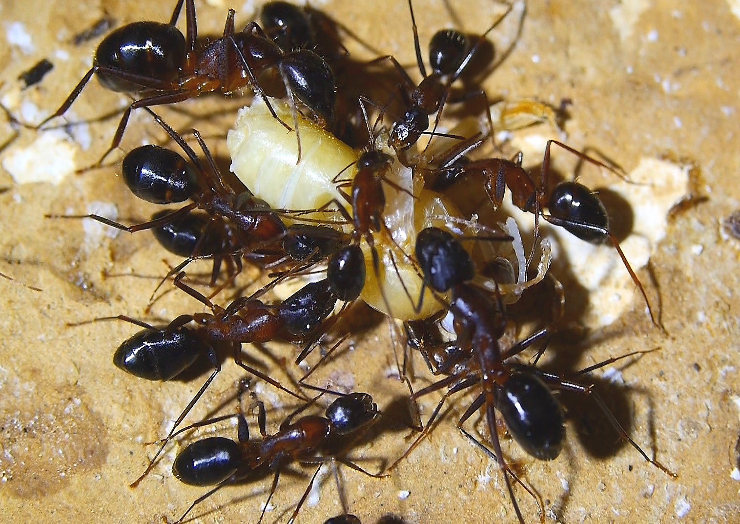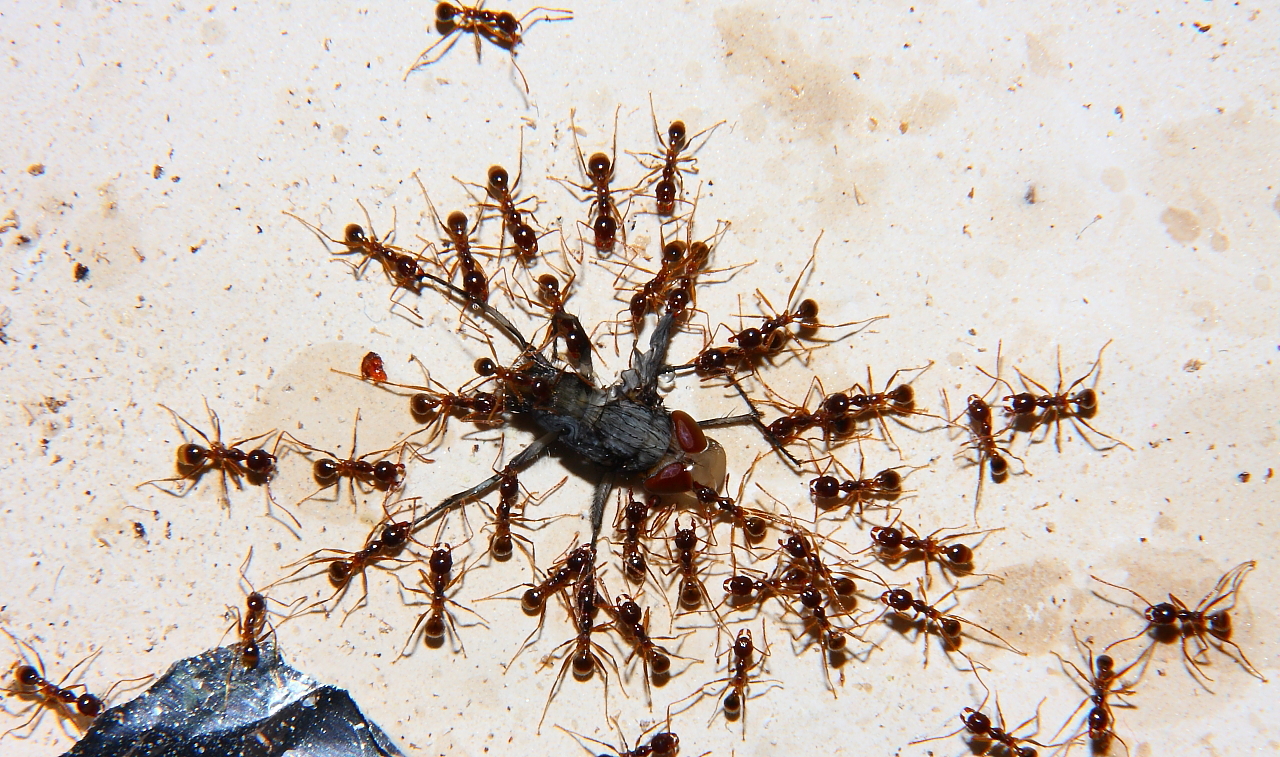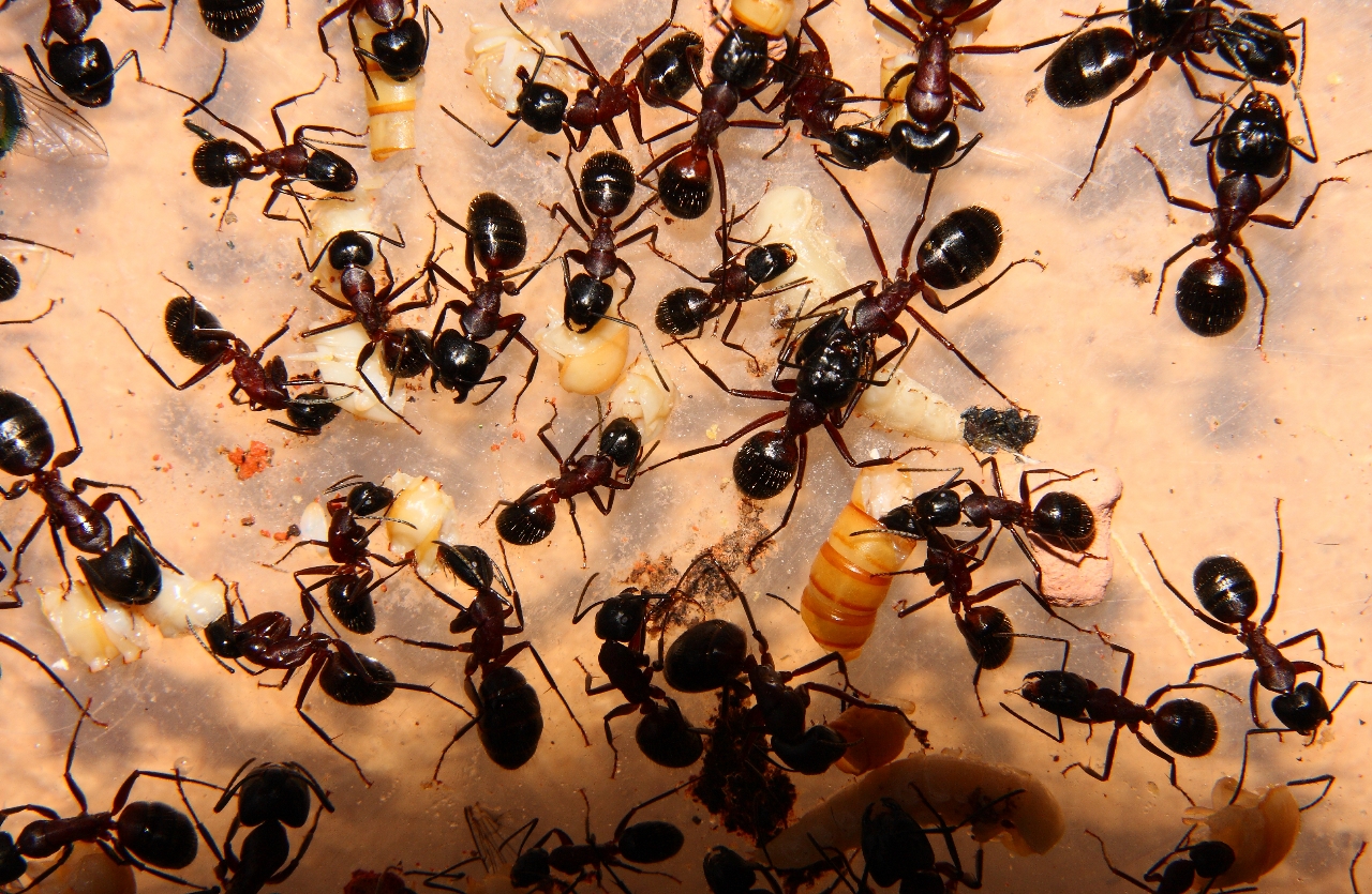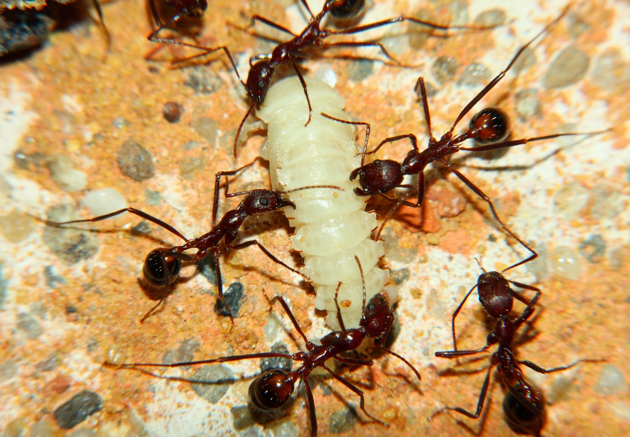 Anders sieht es mit Fliegenmaden aus, die werden von vielen Ameisenarten gerne genommen.