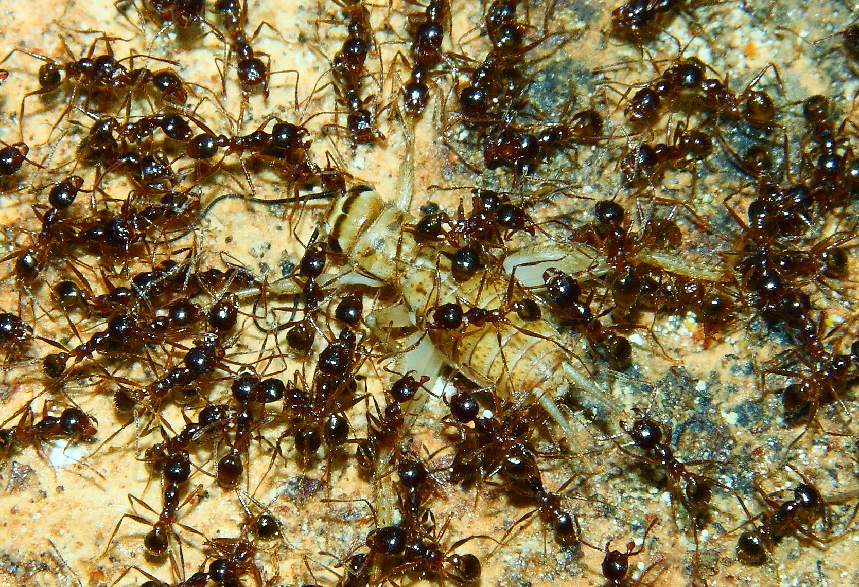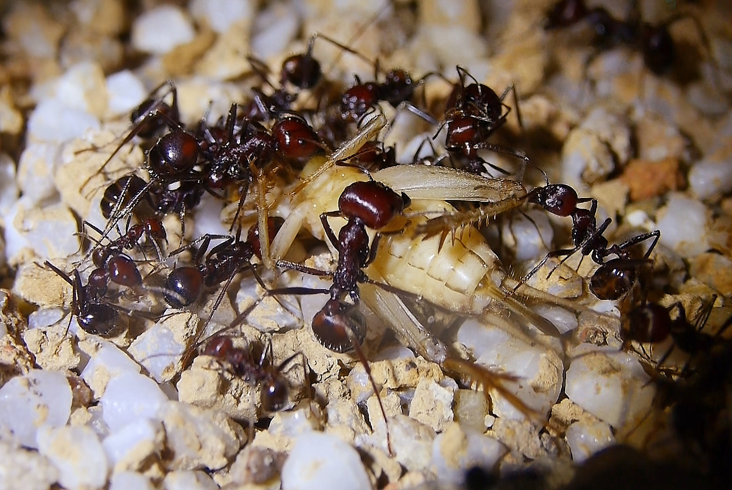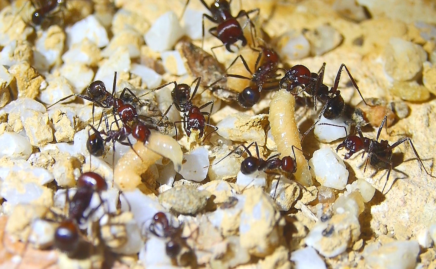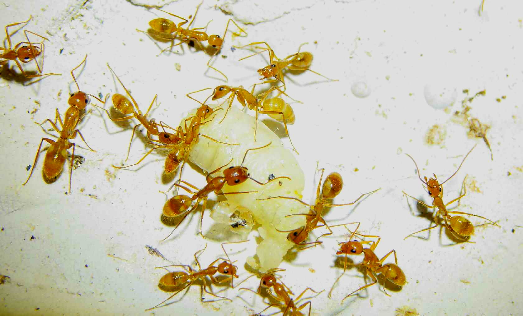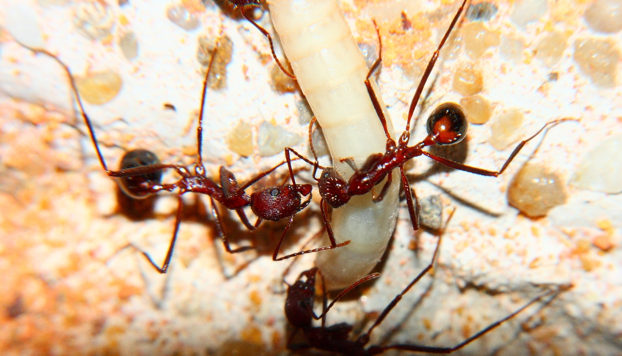 Anders sieht es mit Fliegenmaden aus, die werden von vielen Ameisenarten gerne genommen.