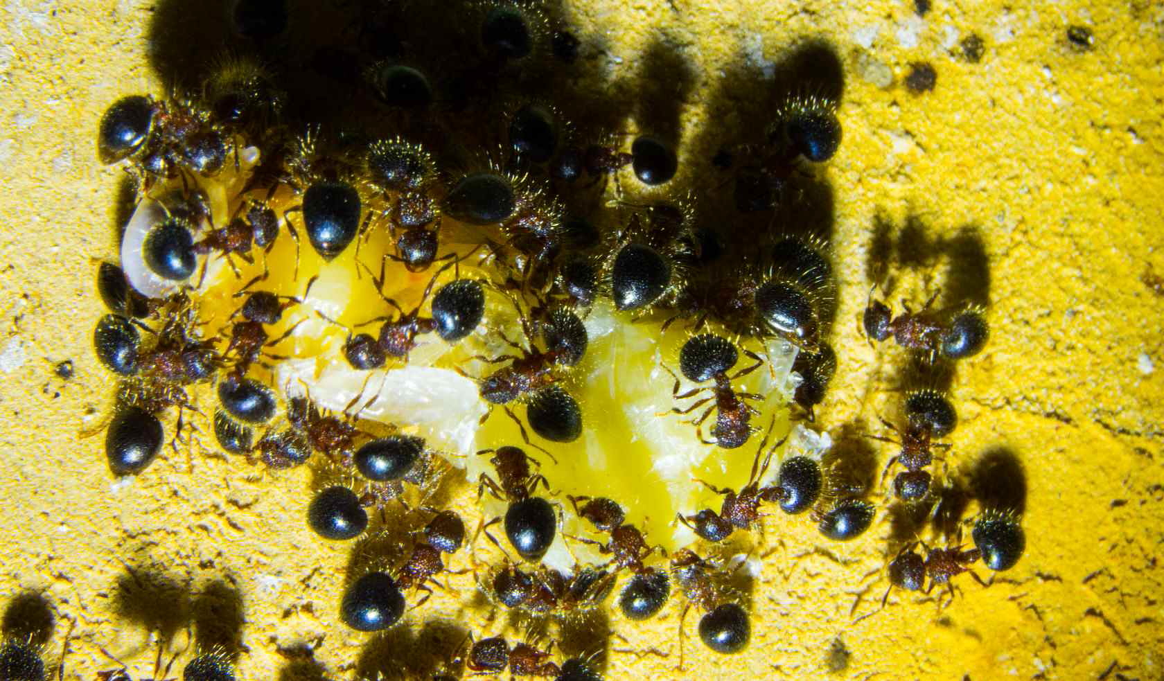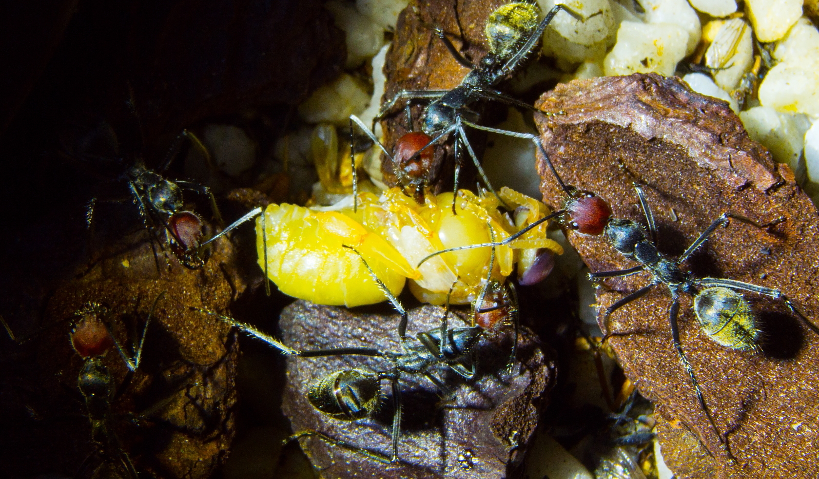 Viele Ameisenarten zerlegen es oder tragen Eigelb ein ohne das erkennbar ist das es verwertet wird.