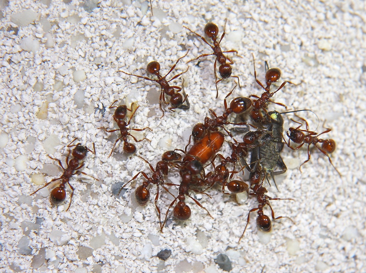 Anders sieht es mit Fliegenmaden aus, die werden von vielen Ameisenarten gerne genommen.