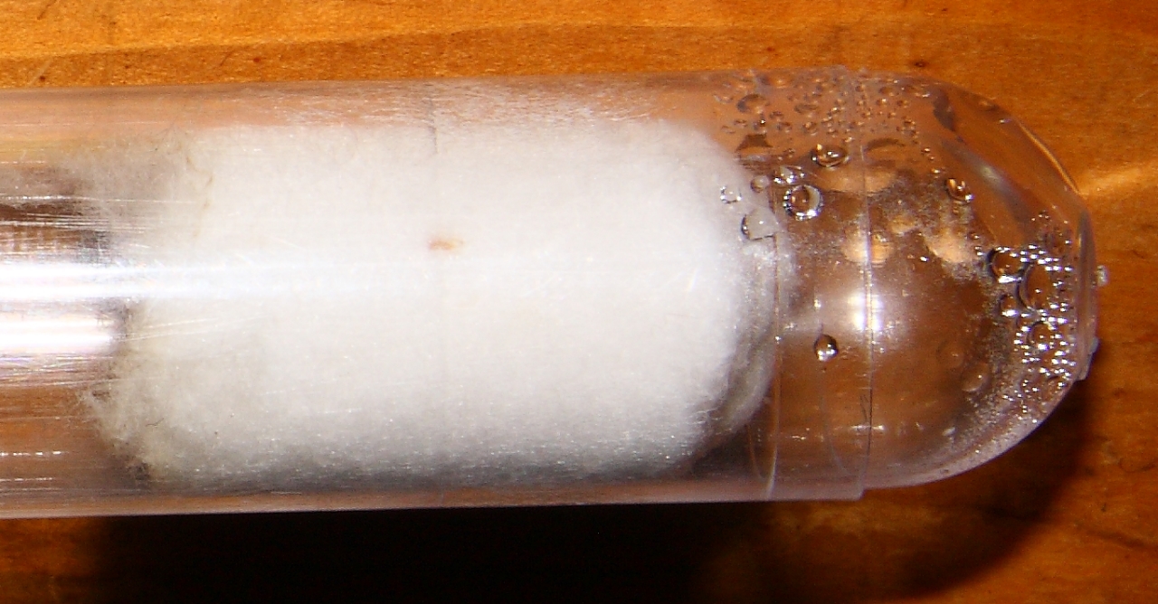 Wasser in ein Reagenzglas, Wattestopfen drauf und fertig ist das Ding.