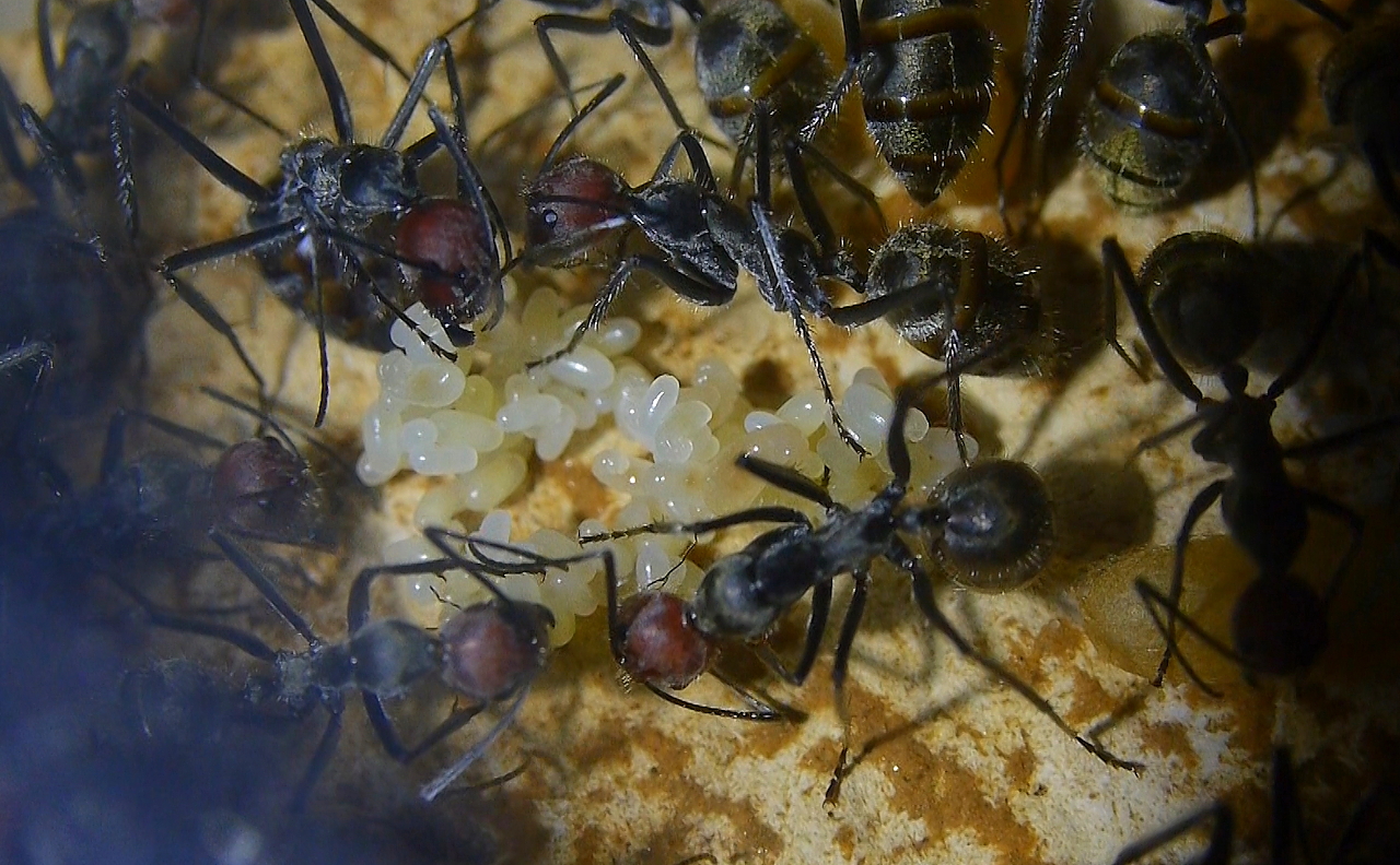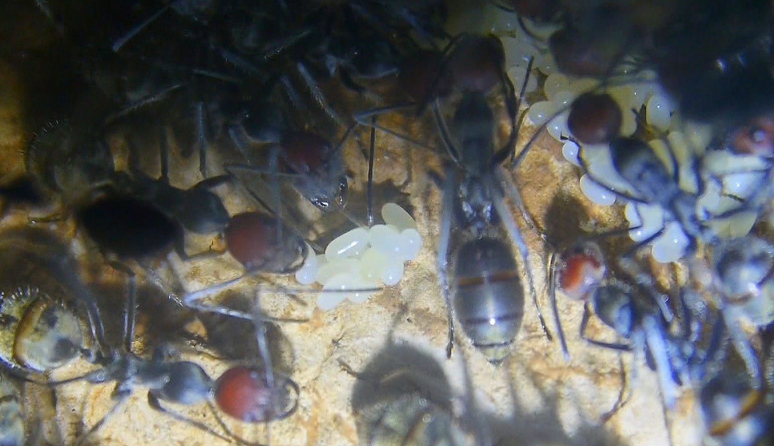 Nachdem Arbeiterinnen ihre Arbeit übernommen hatten, hat die Altkönigin in den letzten Tagen ebenfalls Eier gelegt.