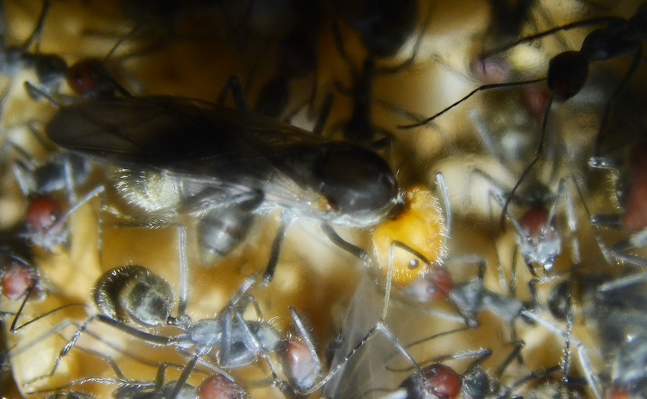Zumindest diese Camponotus singularis Jungkönigin (nicht in der Gründungsphase) bedient sich gerne.