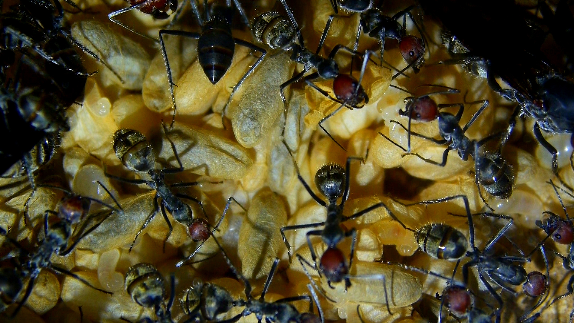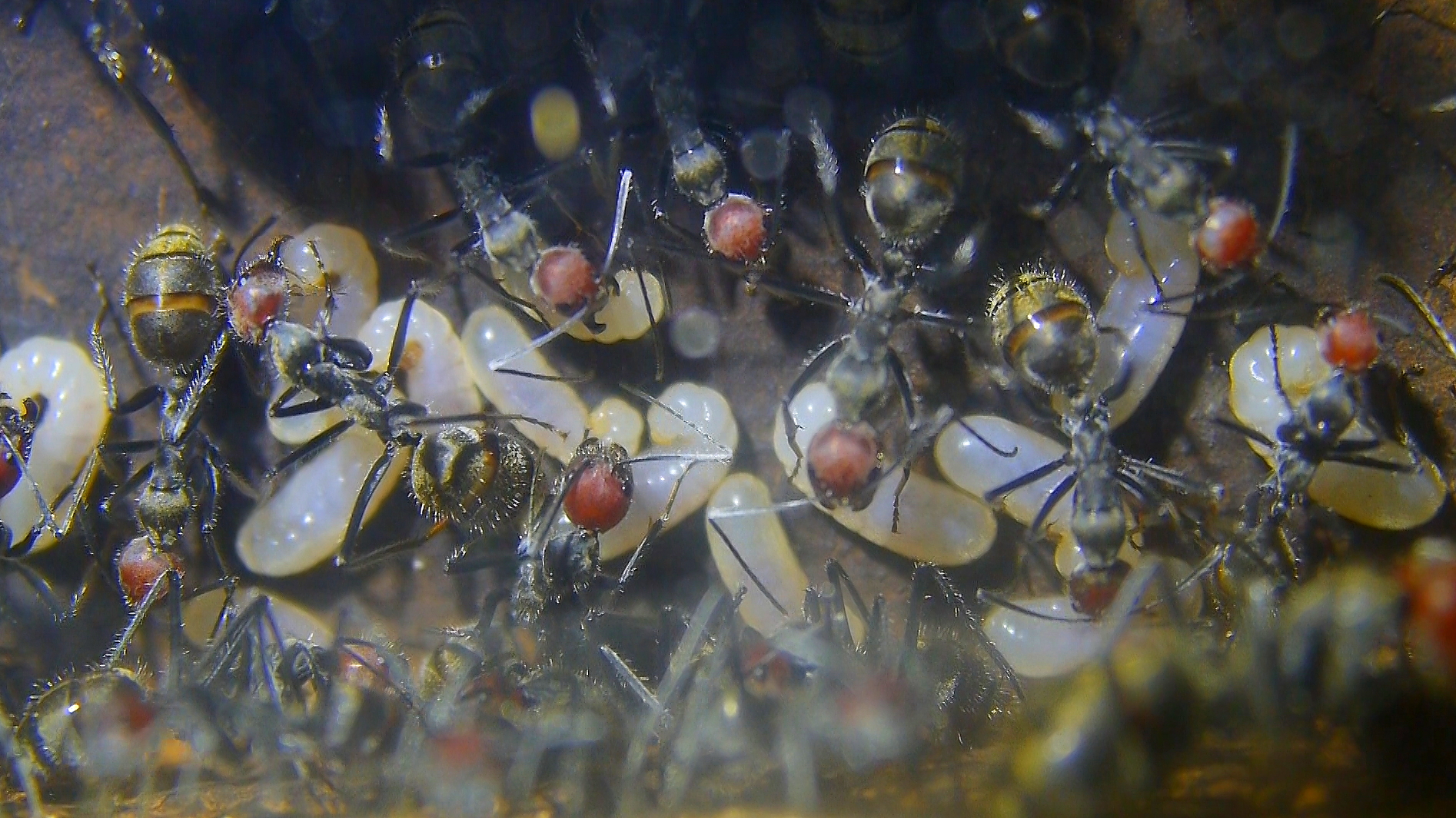 Derart viele Puppen und Larven waren noch nie zu beobachten über die vielen Jahre meiner Camponotus singularis Ameisenhaltung.