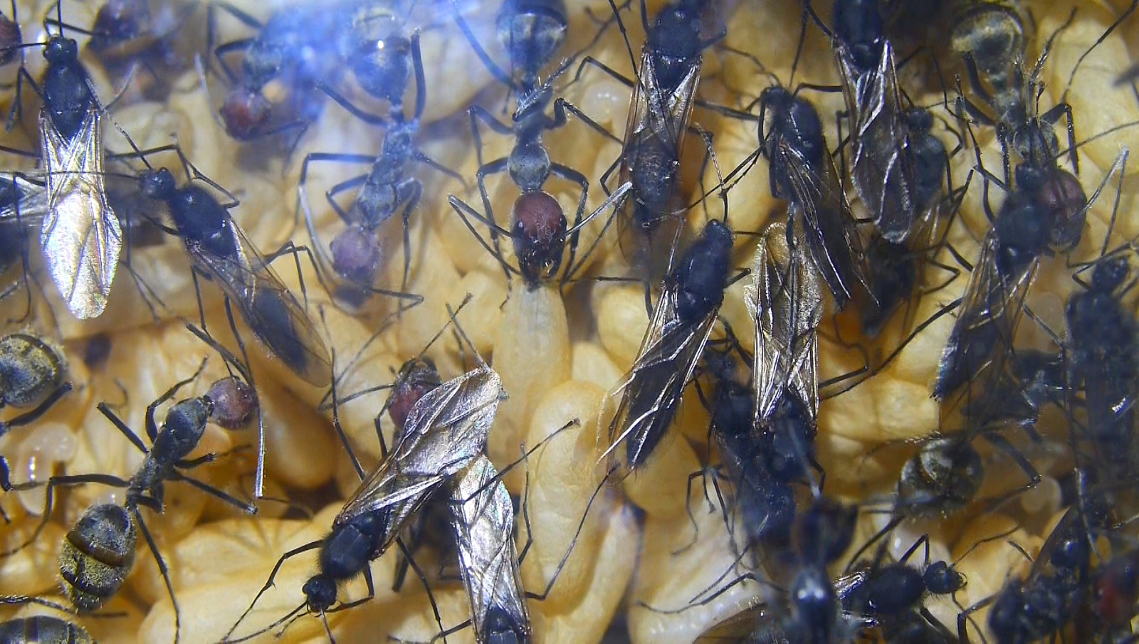 Während sich im Nest die nächsten Geschlechtstiere für einen Schwarmflug entwickeln,