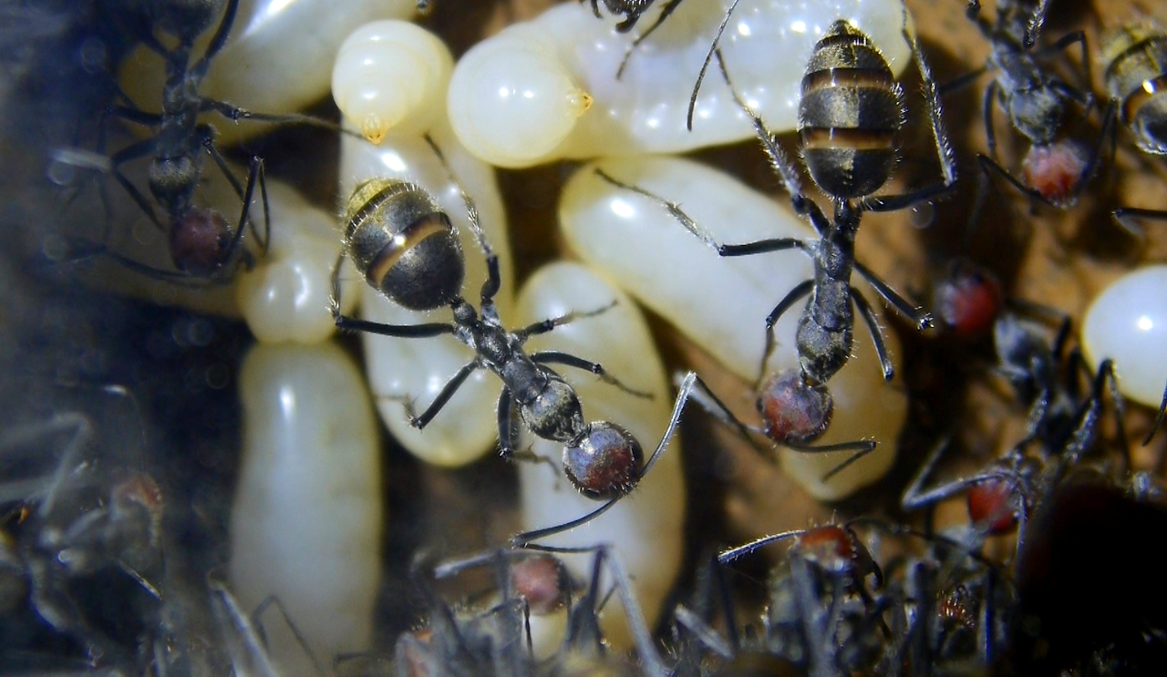 Derart viele Puppen und Larven waren noch nie zu beobachten über die vielen Jahre meiner Camponotus singularis Ameisenhaltung.