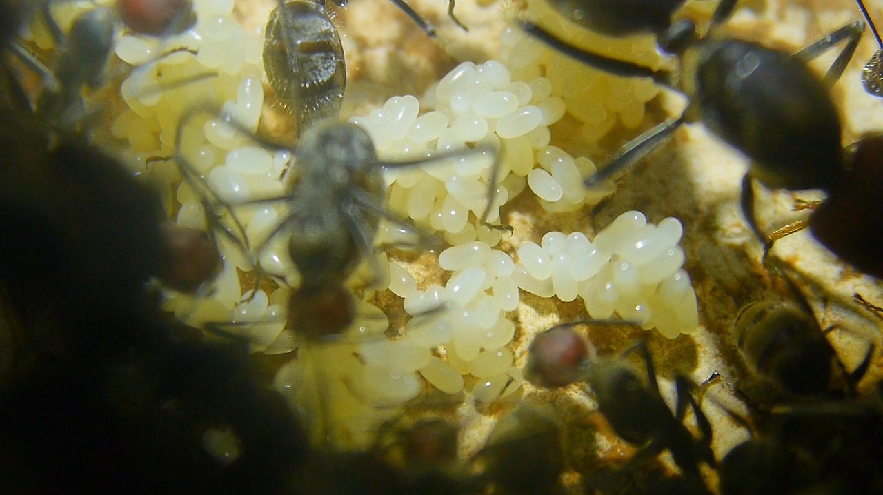 Nachdem Arbeiterinnen ihre Arbeit übernommen hatten, hat die Altkönigin in den letzten Tagen ebenfalls Eier gelegt.