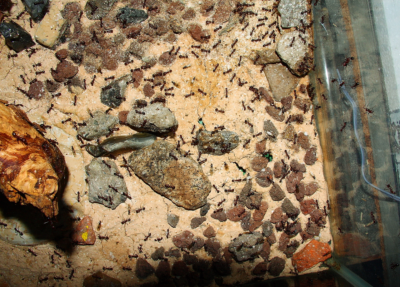 Der Zeitpunkt ist erreicht wo es etwa so viele Aphaenogaster texanaArbeiterinnen wie Männchen gibt.
