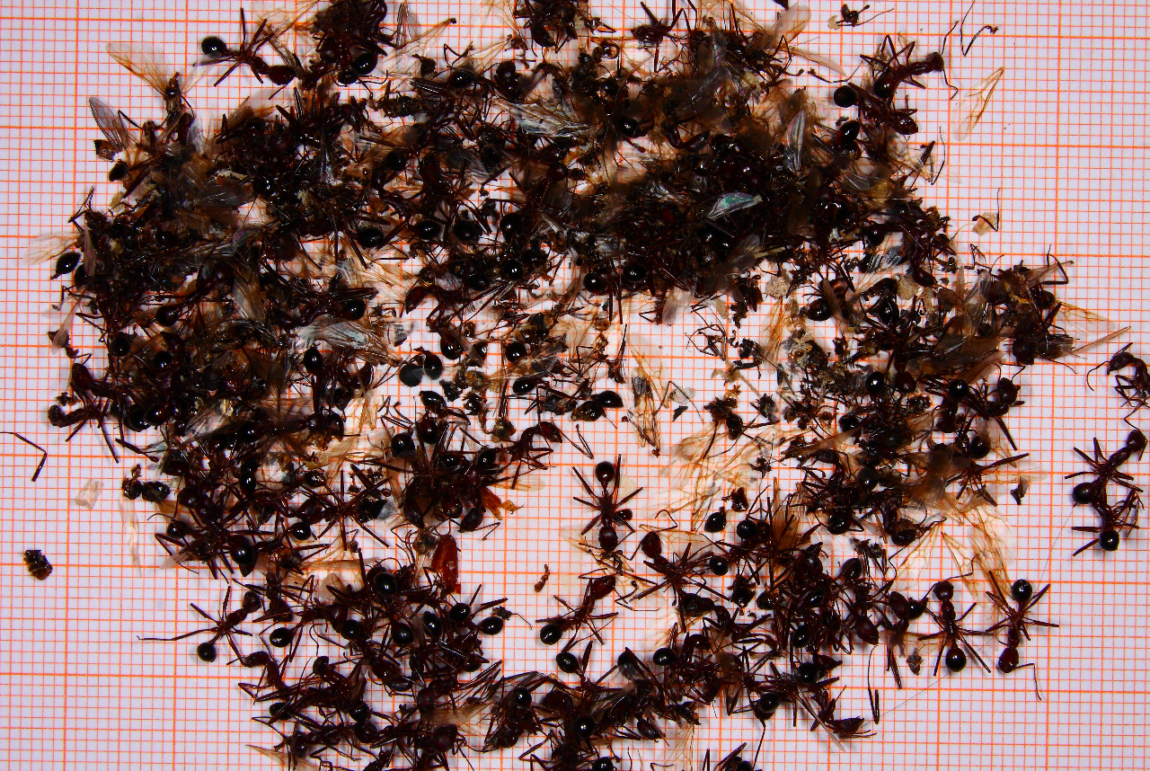 Etliche Ameisenarten können mit Fliegenpuppen nichts anfangen, erkennen sie nicht als Beute und lassen sie liegen.