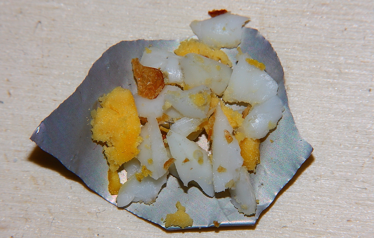 Um auch ohne Insektengaben eine schnelle Entwicklung zu bekommen, halte ich ein Volk, das als Ersatz gekochtes Eigelb und Eiweiß bekommt.