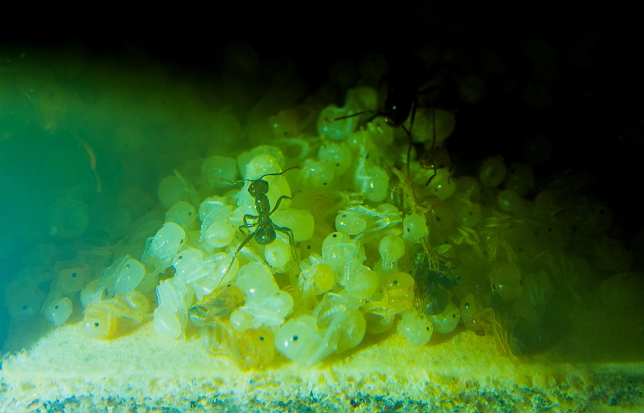 Auf den Bildern nicht richtig sichtbar, sie legen ihren Nachwuchs nicht ab, halten ihn in ihren Mandibeln.