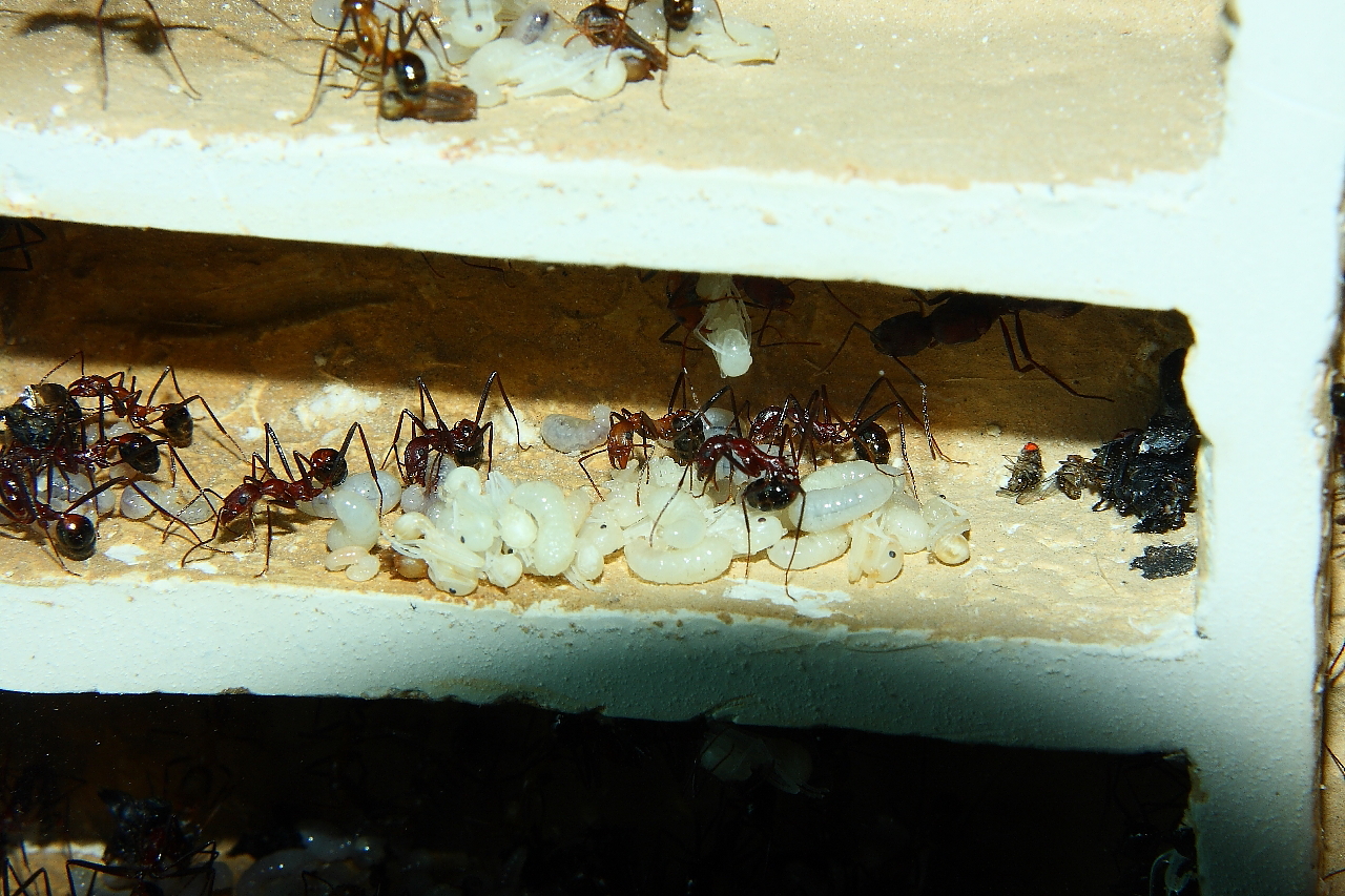 Das Glück, es wurde reichlich herausgefordert, auf der letzten Etappe ist der Wassertank ausgelaufen und hat den Lebensraum dieser Ameisen gut durchfeuchtet.