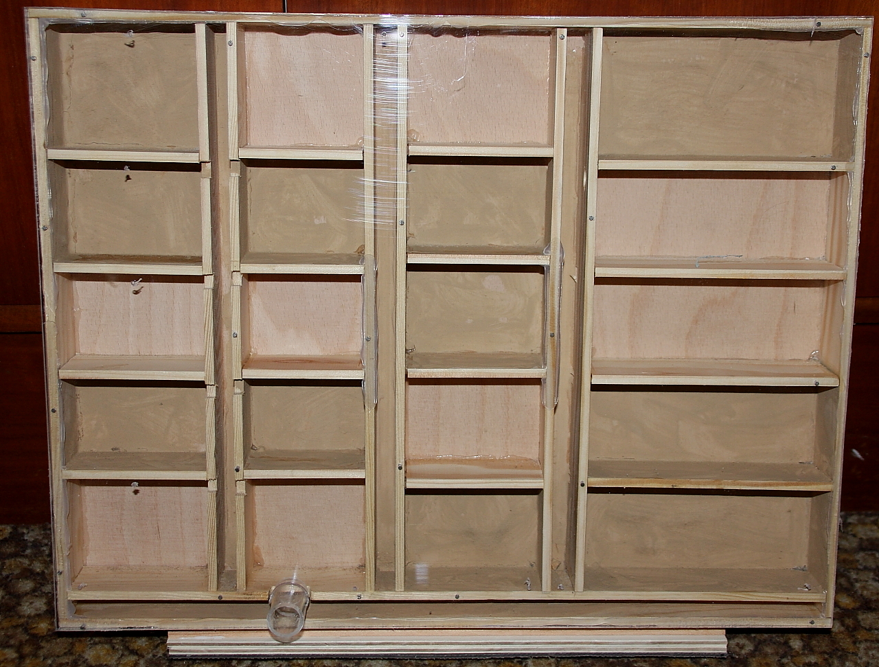 Wie schon gehabt, eine Sperrholzgrundplatte auf die zugeschnittene Holzleisten geklebt werden.