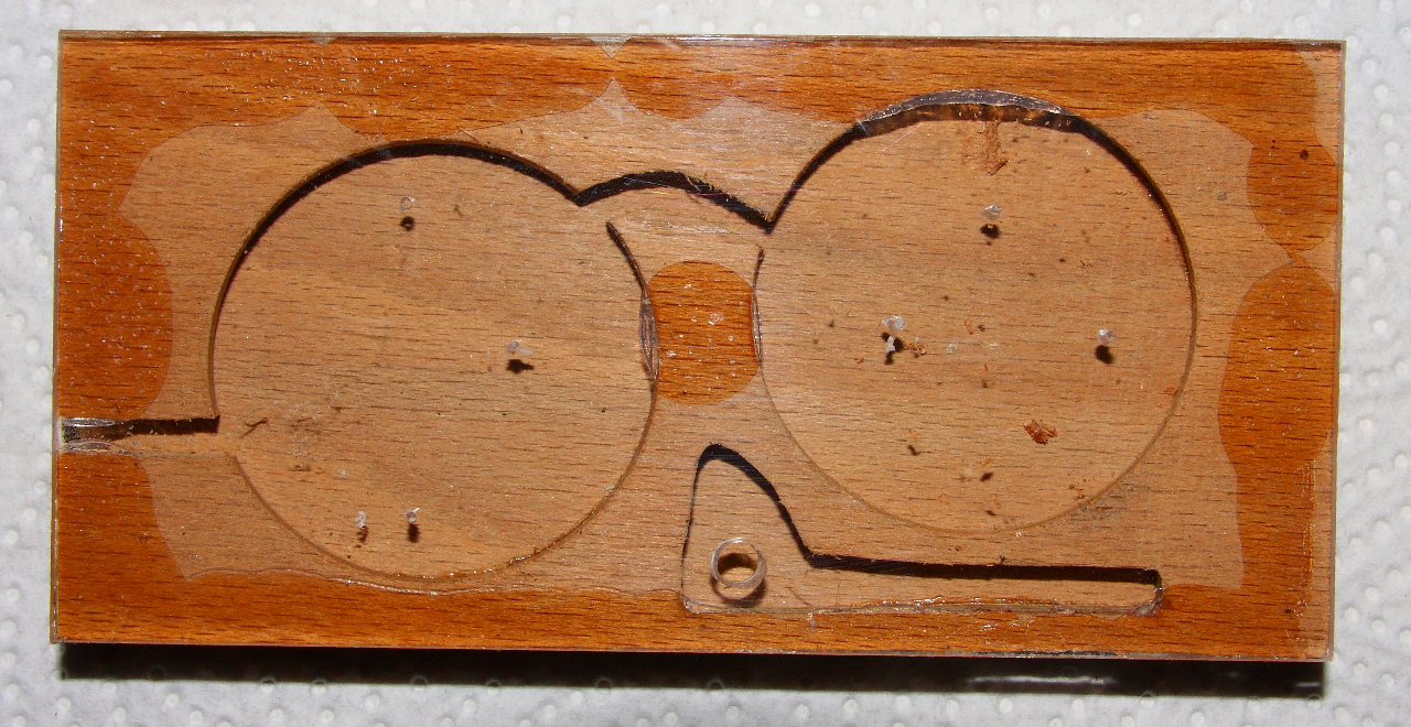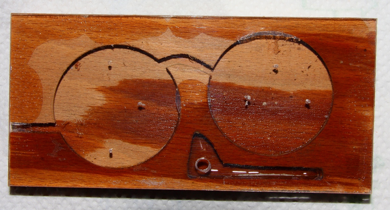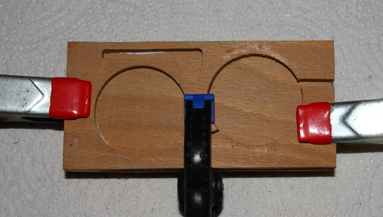 Holzdicke 5 mm, wie sich gleich zeigt ist das auch die spätere Kammertiefe des Nestes.