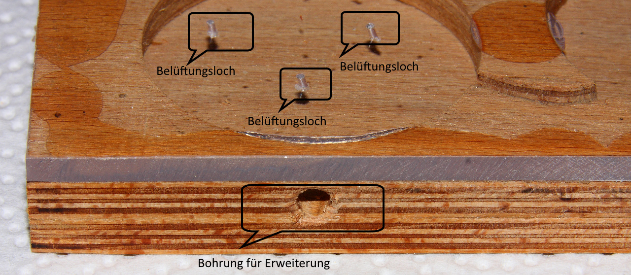 Verklebt mit einer feinen Metallgaze können seitliche Bohrungen zusätzlich hilfreich sein.