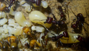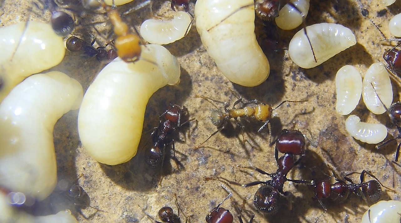Fliegenpuppen, nicht alle Ameisenarten erkennen diese als Beute.