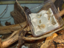 Für Grillen und Heimchen gibt es extra Futter von mir ins Becken, mit den doch zahlreichen Versteckmöglichkeiten