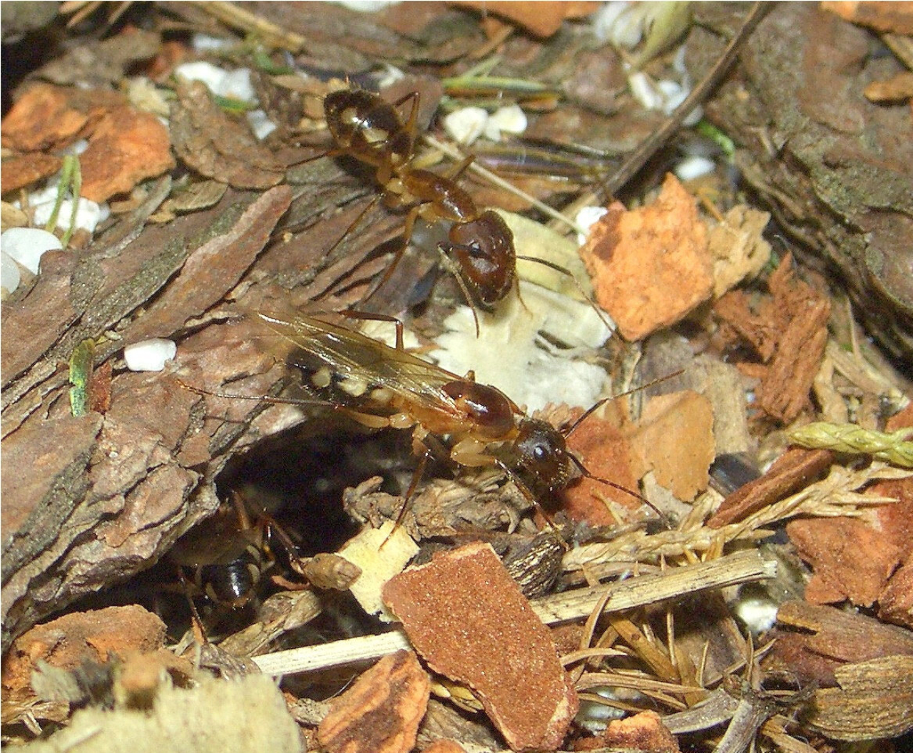 Mit den Wurzeln und Ästen ist eine kleine Kolonie Temnothorax mit ins Becken gekommen.