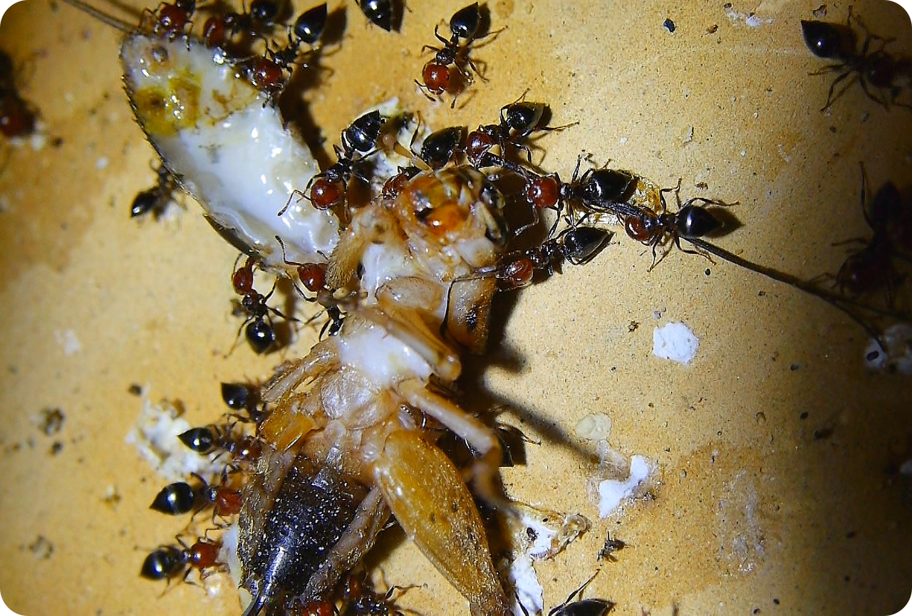 Macht riesig Spaß ihnen zu zuschauen wie schnell sie andere Ameisen rekrutieren (verständigen) um möglichst viel der Insekten zu erbeuten.
