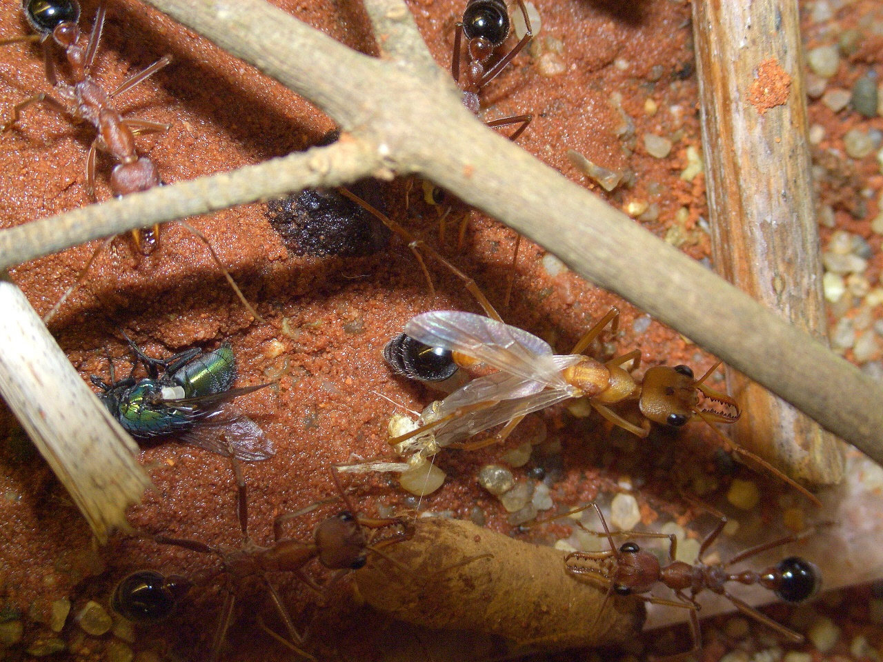 Meine Myrmecia bekommen Heimchen und kleine Heuschrecken, der Renner sind Fliegen