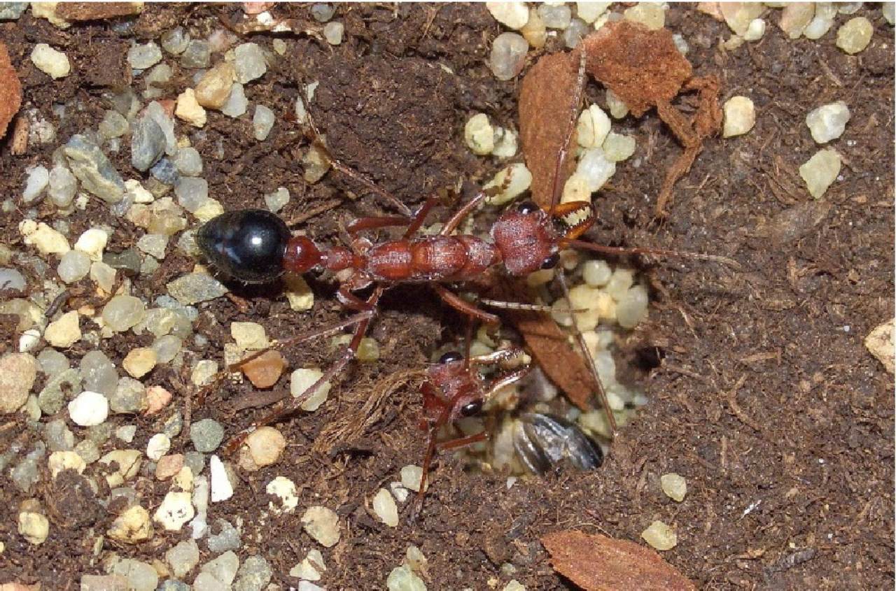 Heute besteht das kleine Myrmecia pavida Volk aus 5 Arbeiterinnen und der Königin.