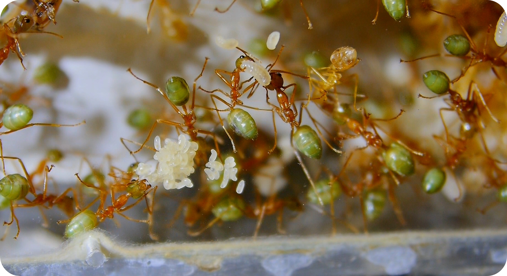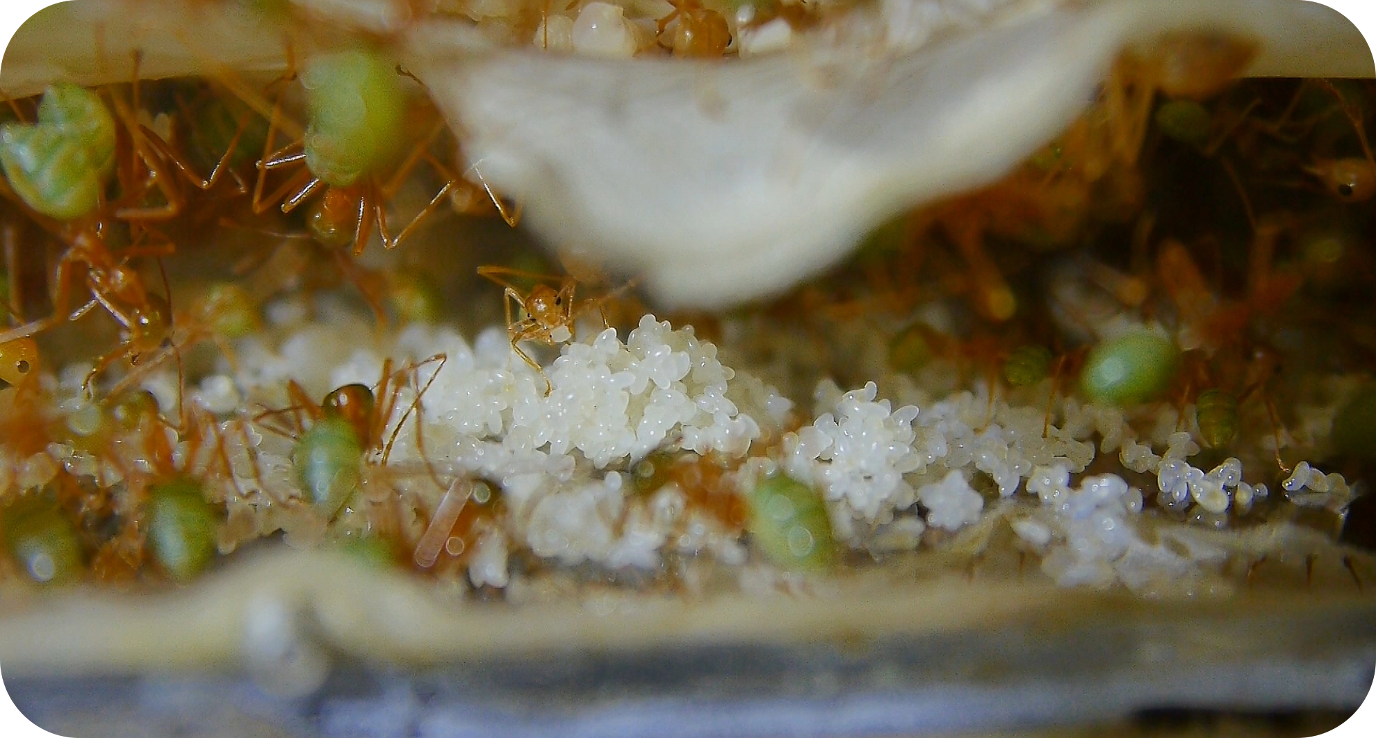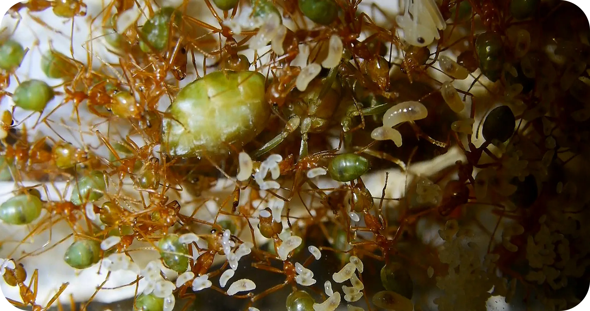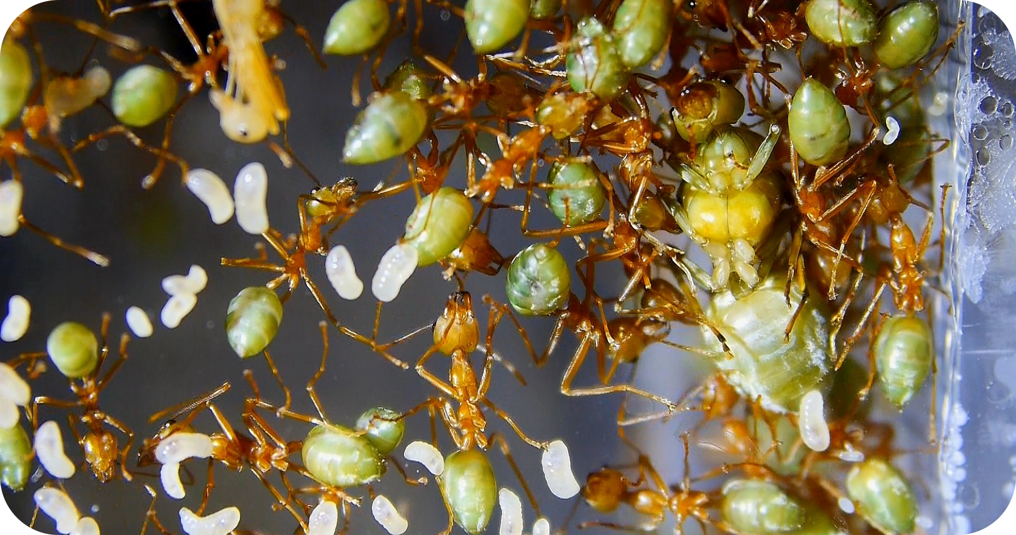 Eigelb als Futter nehmen Oecophylla smaragdina auch.