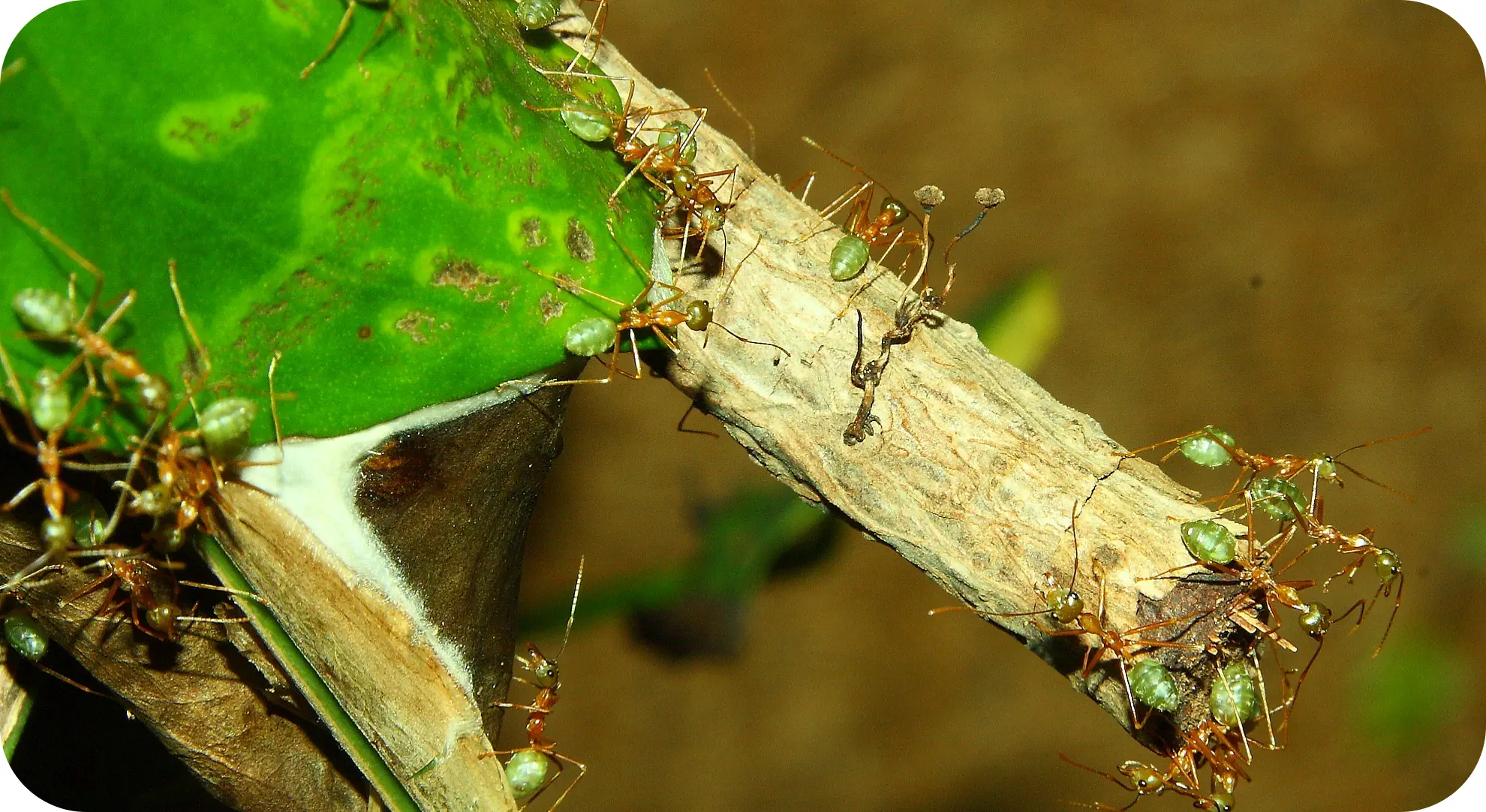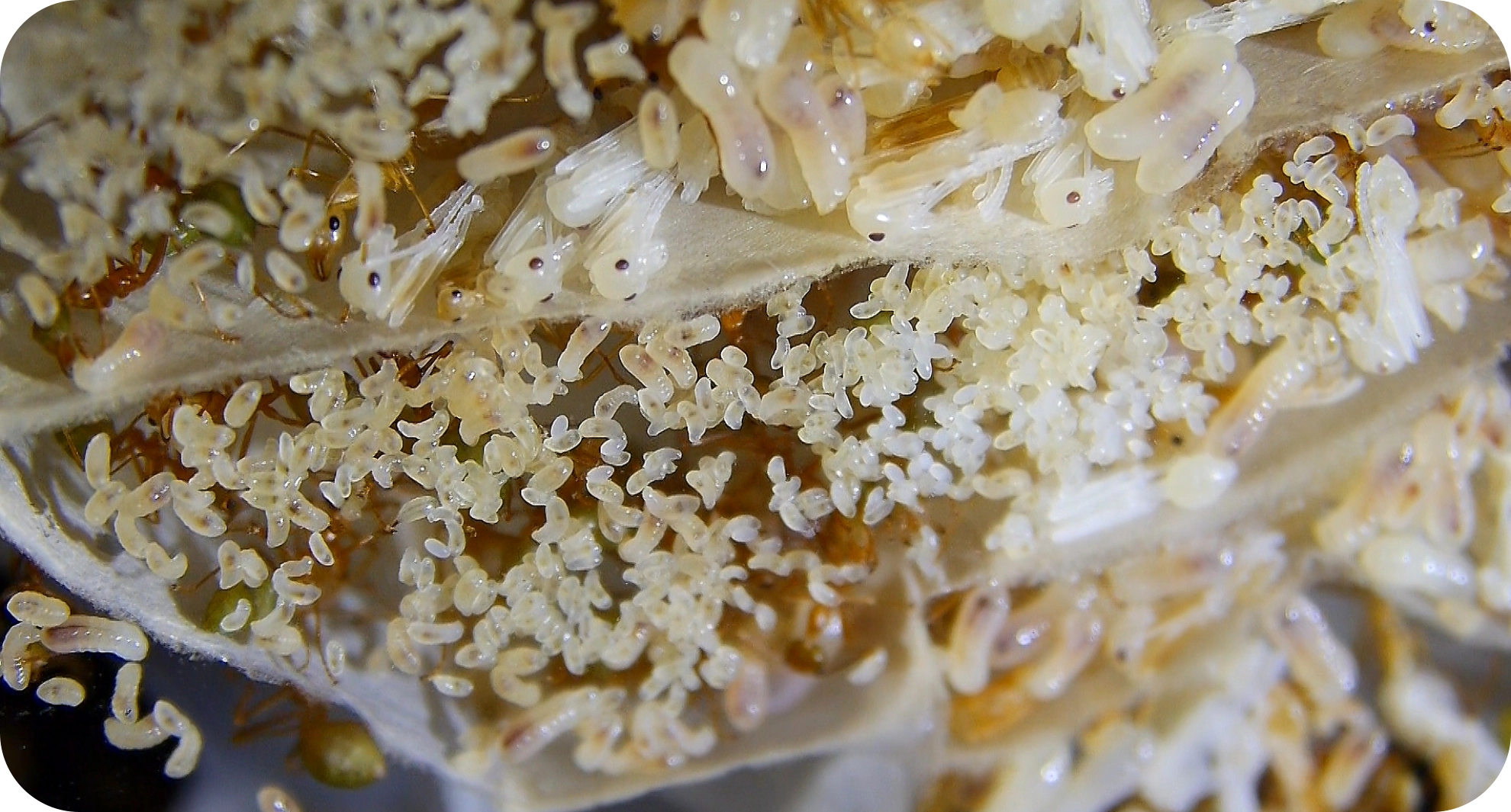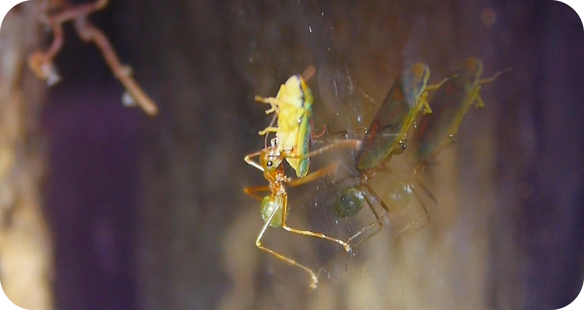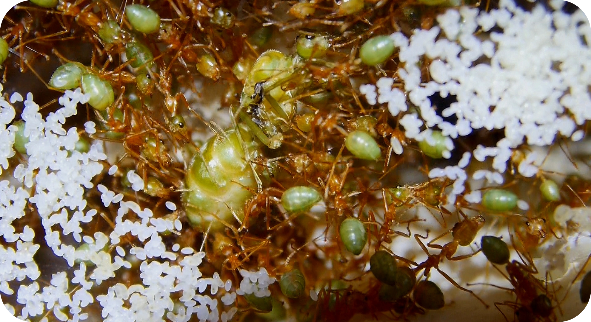 Eigelb als Futter nehmen Oecophylla smaragdina auch.