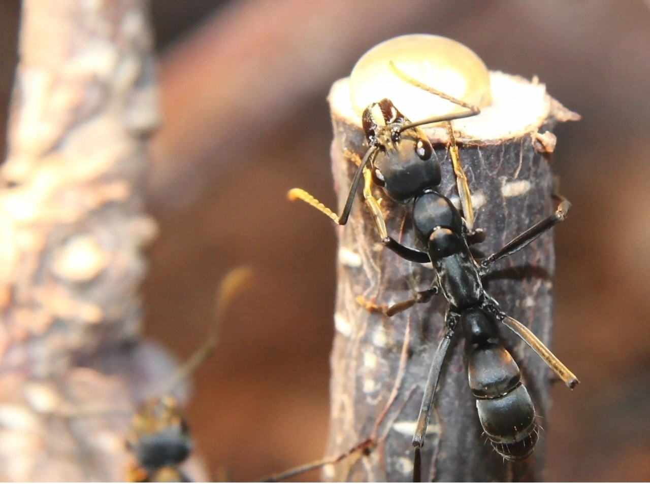 Dabei gibt es Probleme, da diese Ameisen keinen sozialen Magen haben, musste die Natur sich was anderes einfallen lassen.