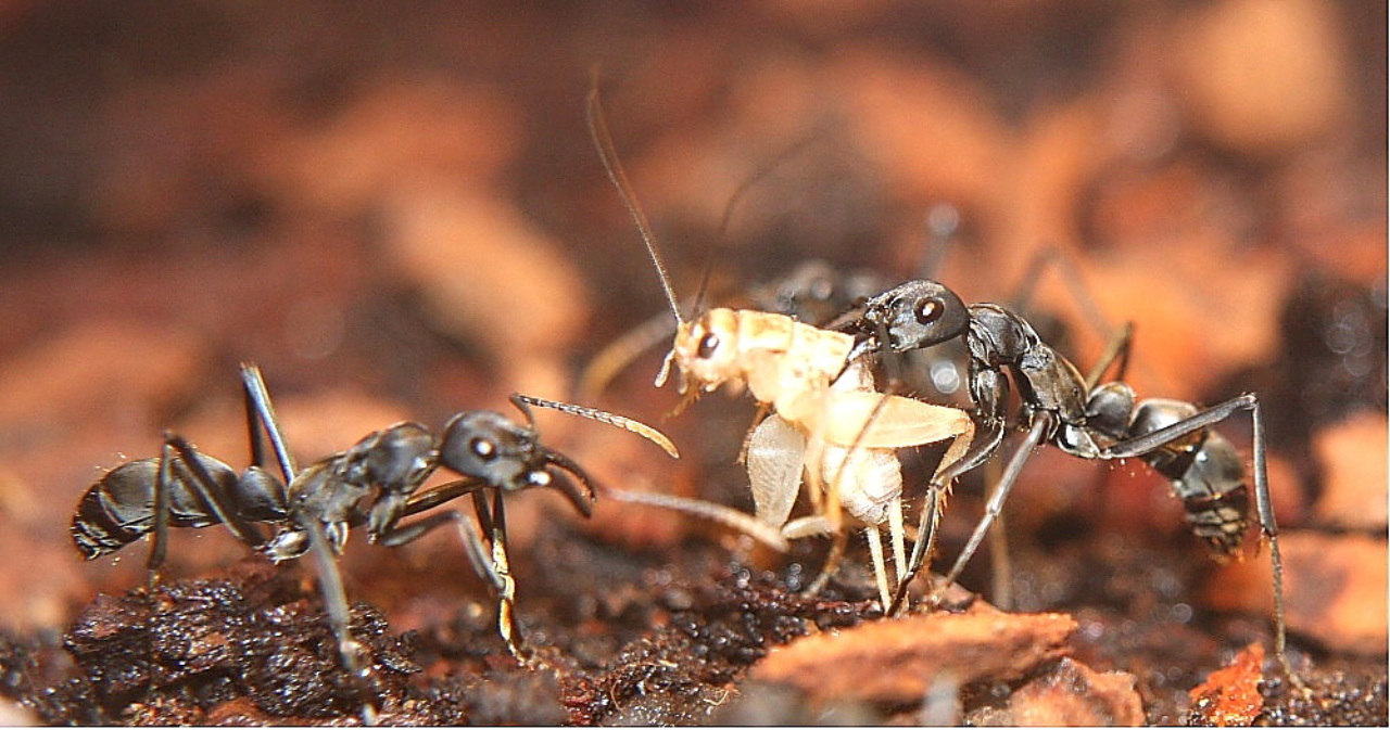 Lieber ist Pachycondyla apicalis Frischfleisch, ein Heimchen zu fangen macht ihnen besondere Freude.