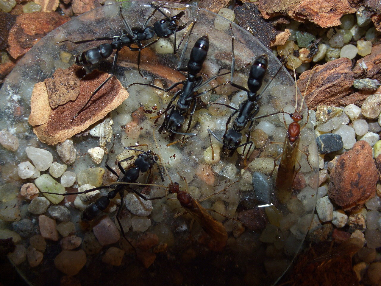 Gut 14 Tage nach den ersten Männchen gab es teilweise Entwarnung, auch Pachycondyla apicalis Jungköniginnen geschlüpft.