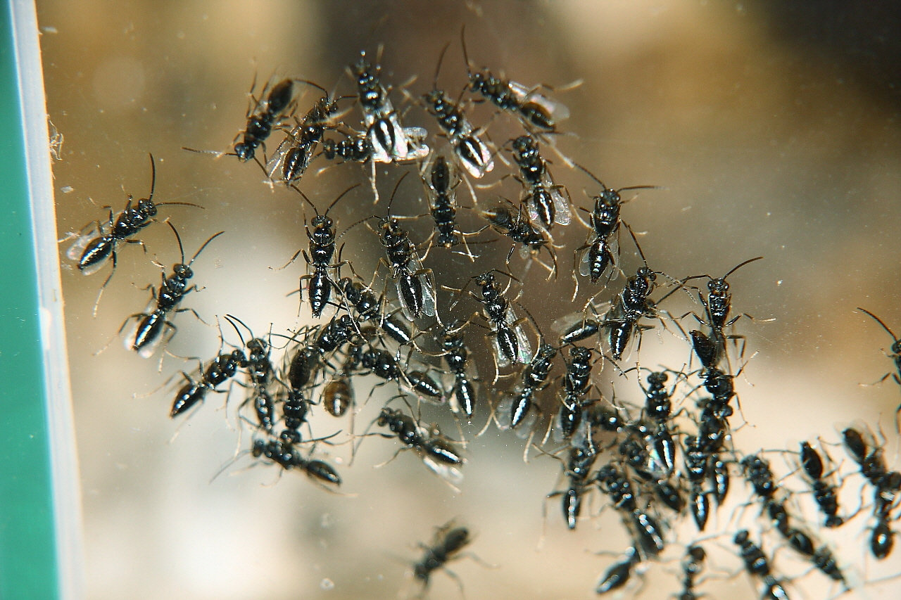Ist gerade Schwarmzeit, unzählige Männchen strömen aus dem Nestausgang und versuchen in den frühen Nachmittagsstunden ihr Glück.